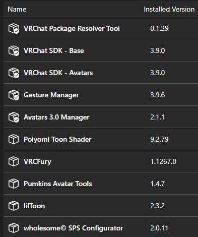 Unity (GoGo Loco by franada, VRChat Toggle Assistant by Shatter, Fake Index by Snøww ღ, and Lod's 3.0 pack by Lo'd's Galaxy, wholesome© SPS Configurator w/ Sound FX by Wholesome.)