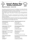 - 1-page reading passage: "Anna’s Rainy Day"