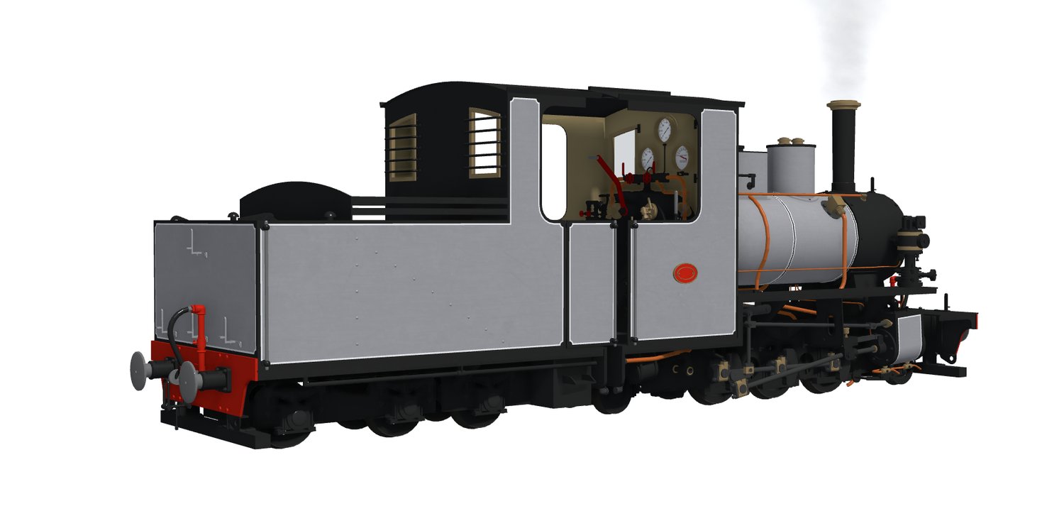 The Devinson Co 2-6-2 is a 15inch (1.25 roblox gauge) freelance tender engine, the model runs has frame and cab detail and is in a lined livery.