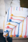 Choose a soft worsted weight yarn; this is a superwash which is a great idea so it can be laundered easily. Use this pattern as a stash busting opportunity to use up those odds and ends of colour. Just imagine each stripe and bobble being a different colour.