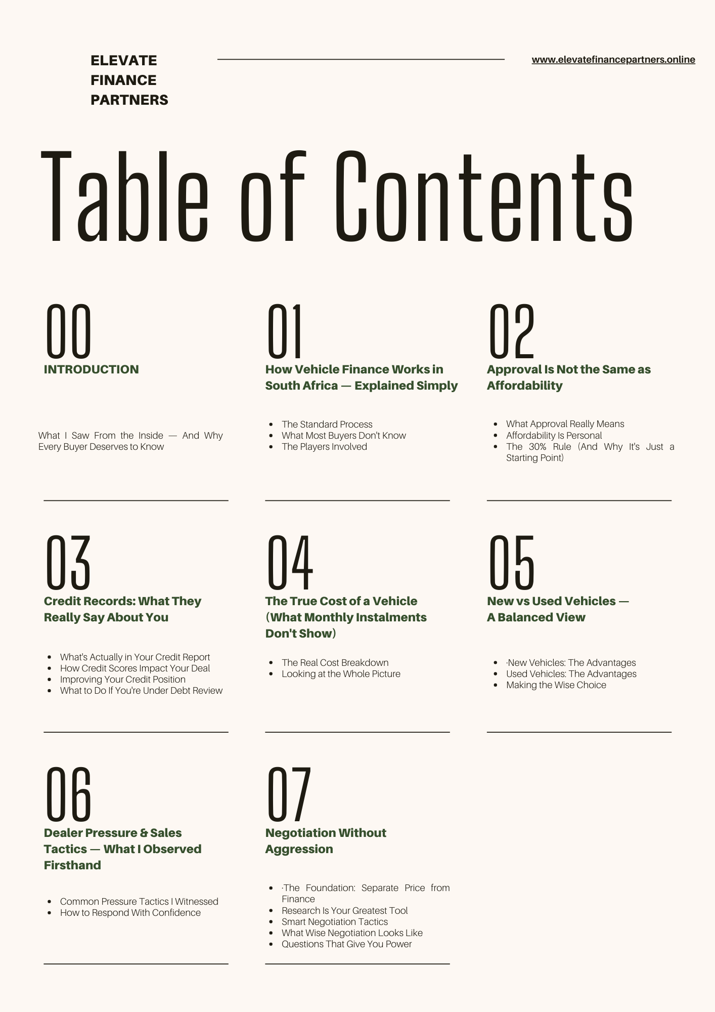Written by Nomzamo Khosa, a former Finance & Insurance (F&I) Manager, this guide gives you the knowledge buyers usually never receive — before it’s too late.