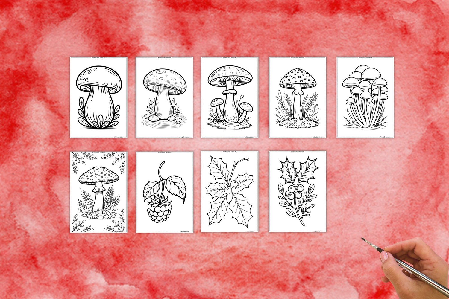 Bring a touch of woodland magic into your sketchbook or digital art projects with this set of 24 printable watercolor templates and digital stamps featuring mushrooms, berries, and holly branches. Perfect for cozy autumn and winter painting sessions, nature journals, junk journaling, card making, and digital design!