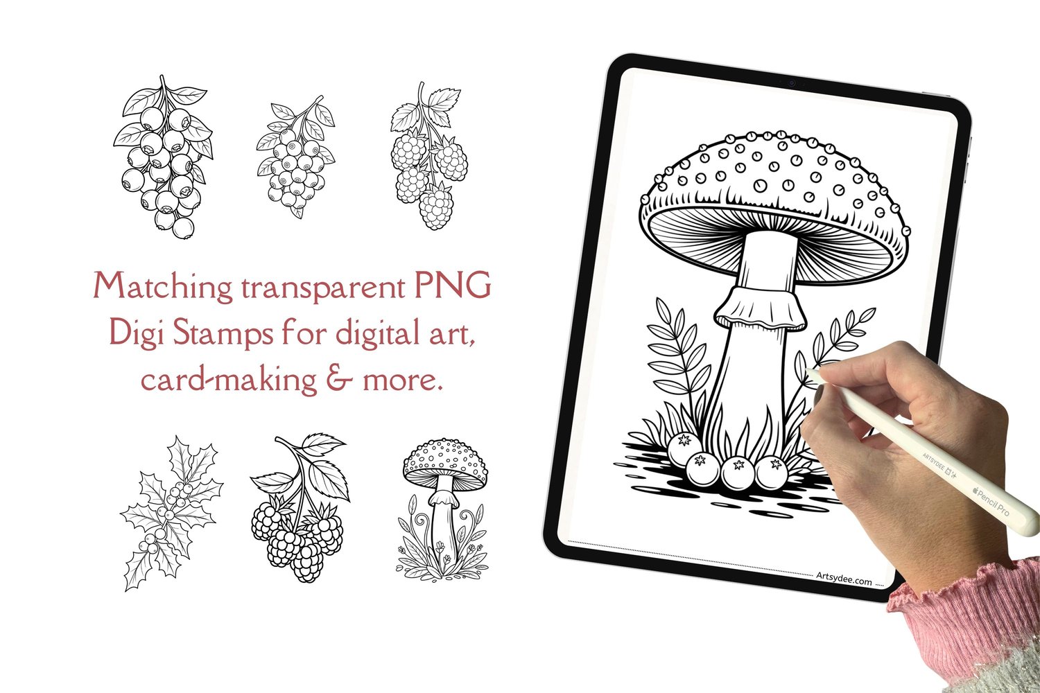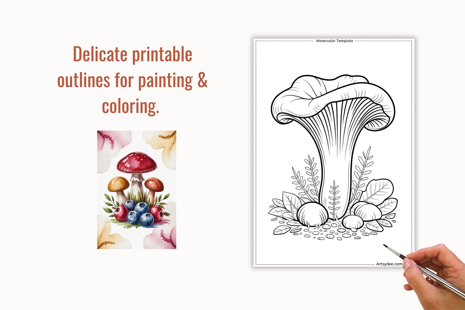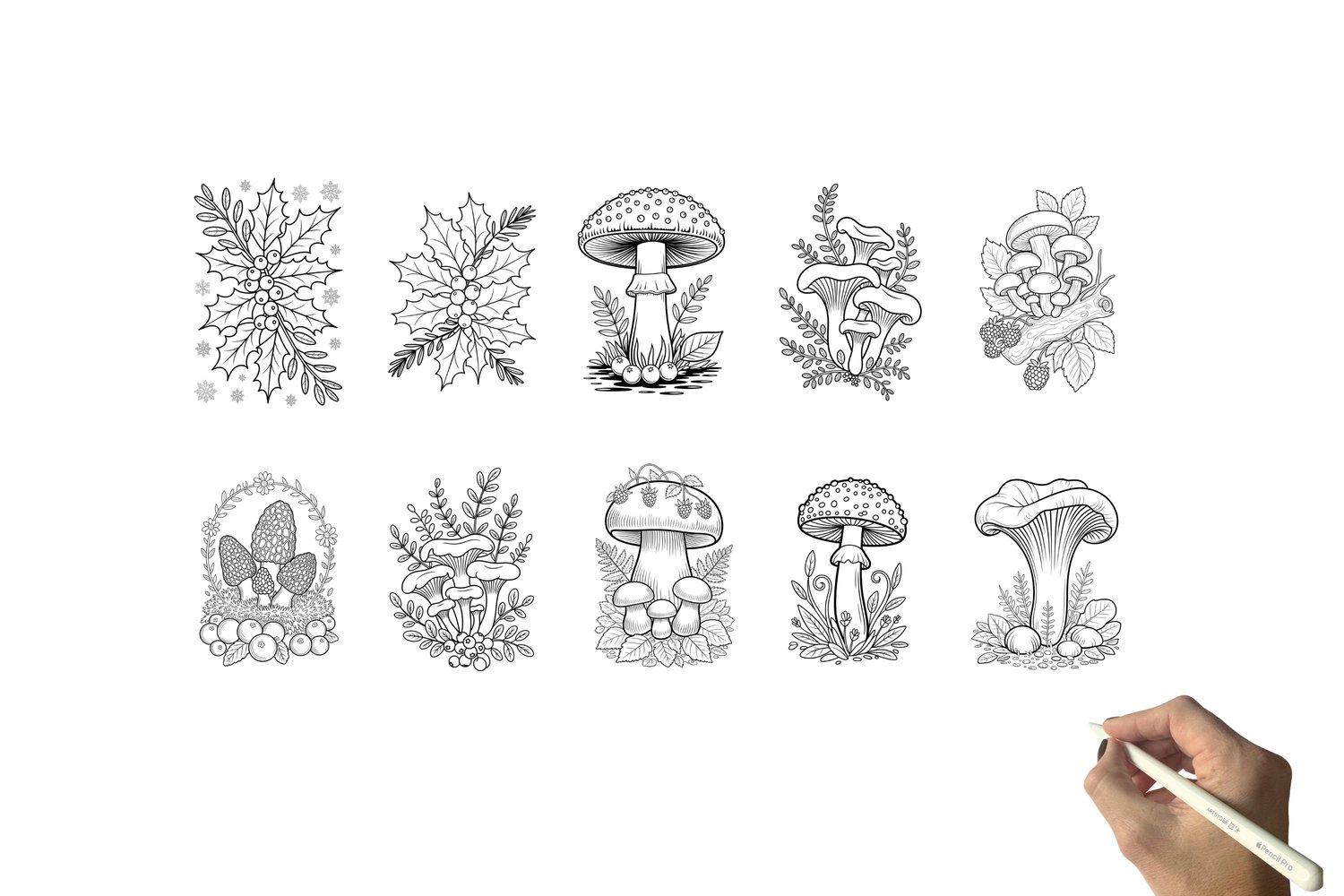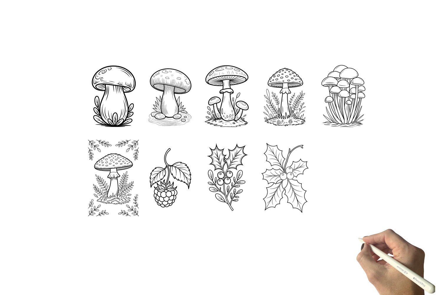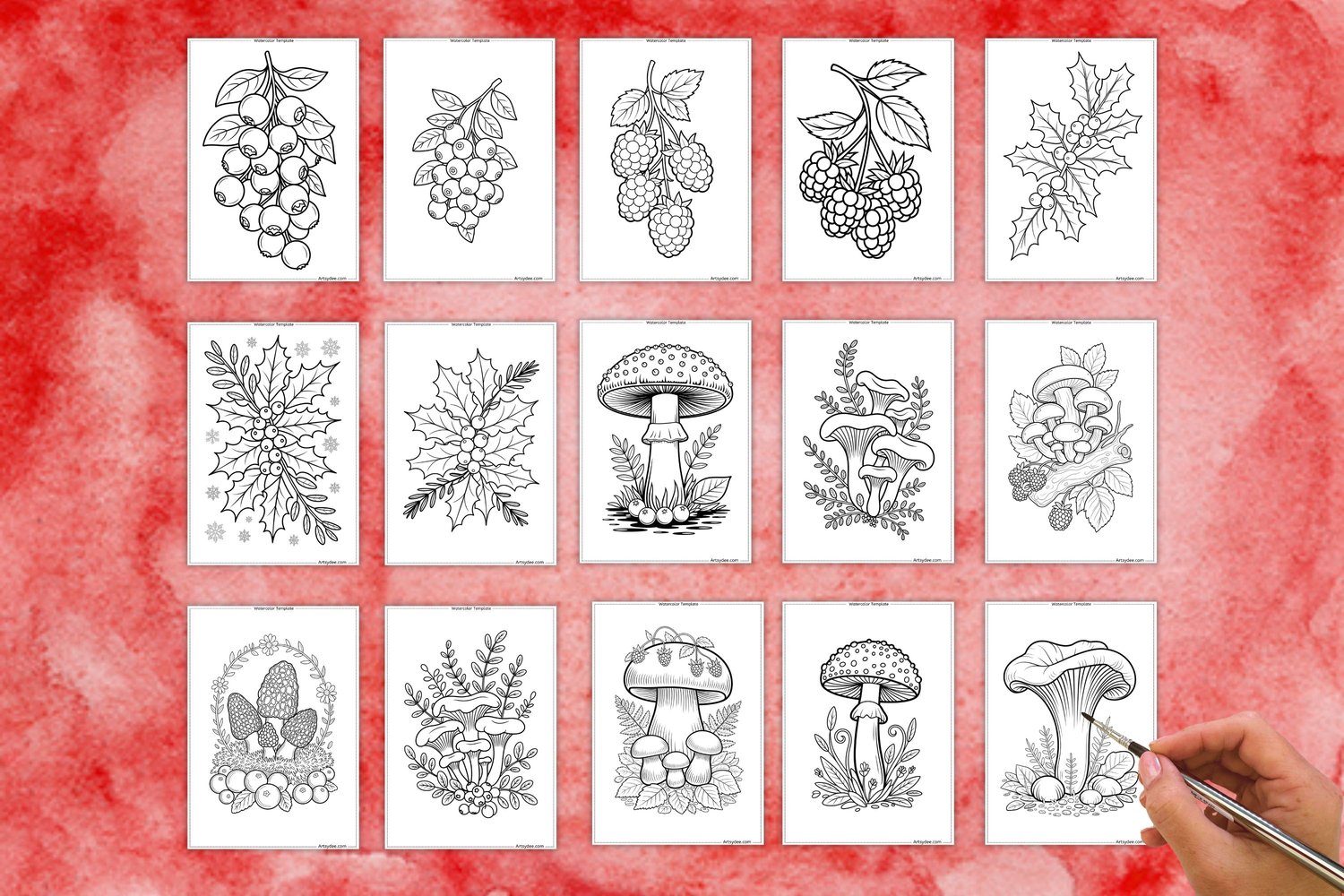π 24 Mushrooms & Berries Watercolor Templates & Digi Stamps (with Grayscale Outlines for Easy Printing!) π
