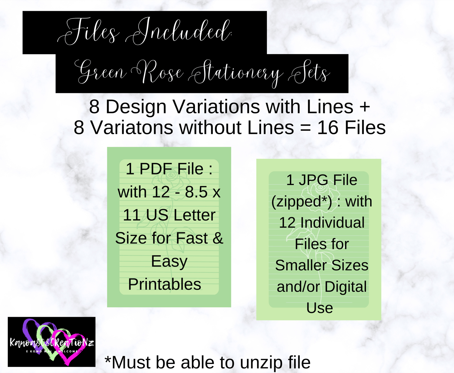 *JPG Zip File gives you access to all 16 individual design files to easily re size each design to use as greeting cards, notes, letters, etc.