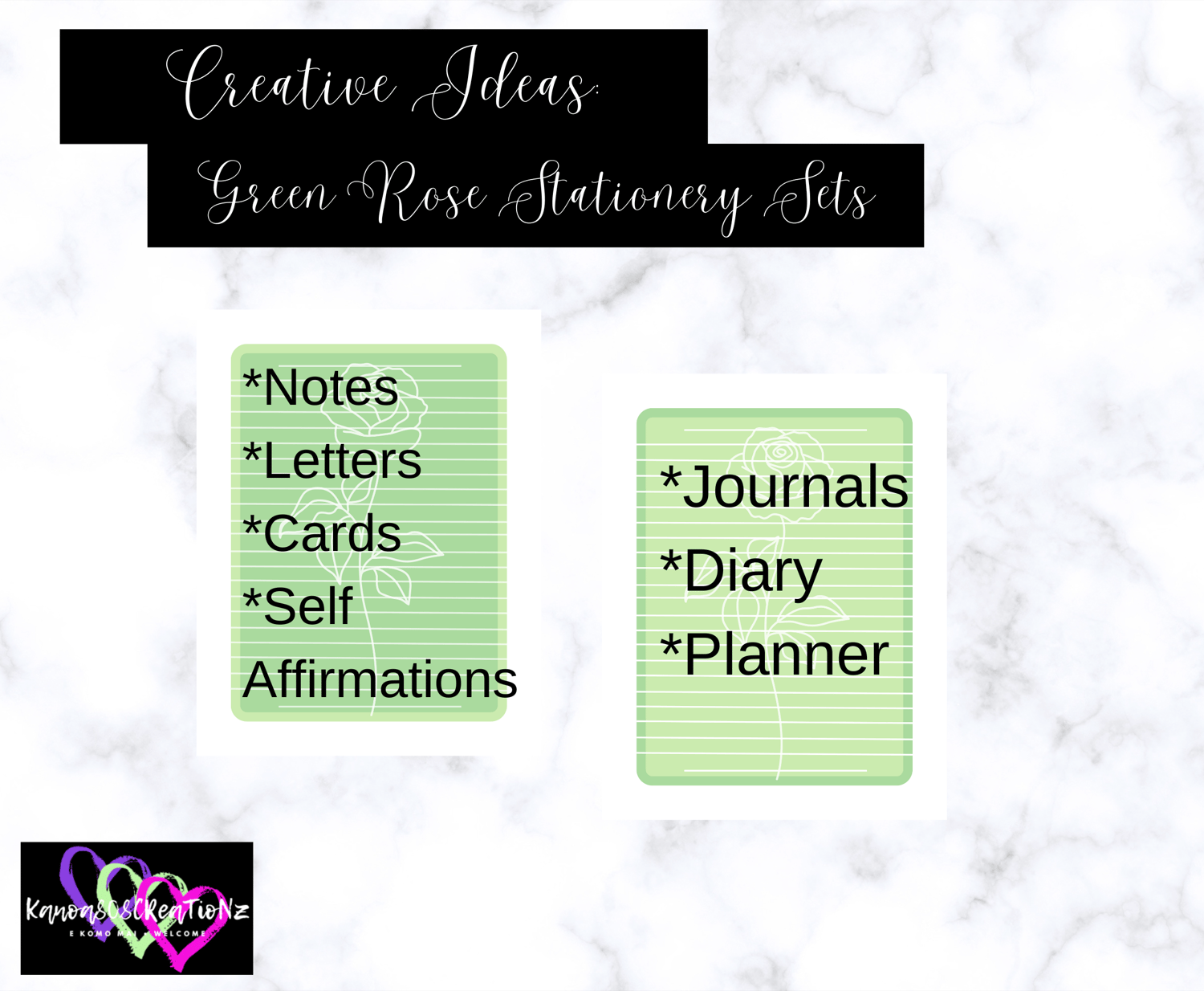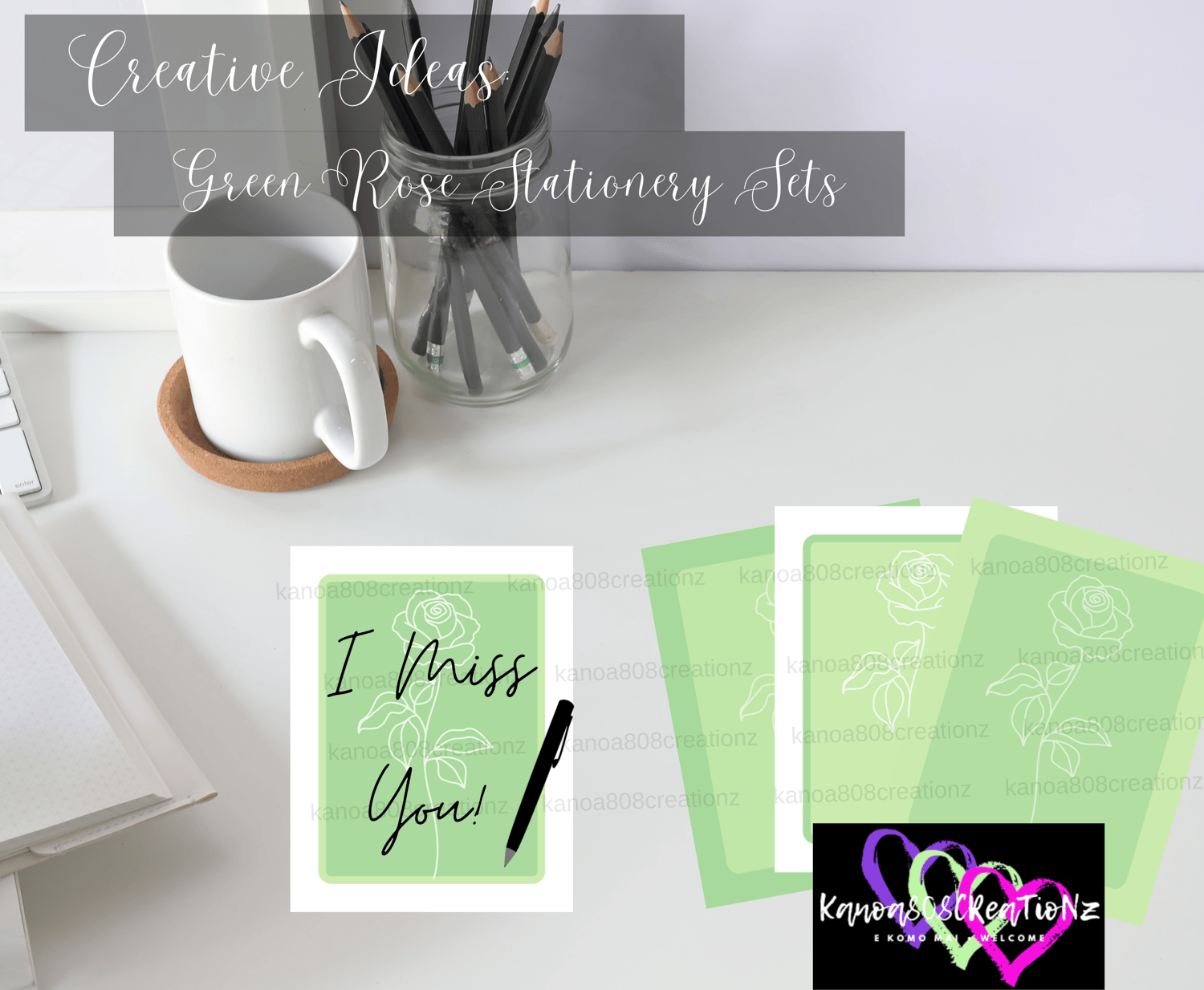 Digital Printable & Downloadable: Green Roses Stationery Set
