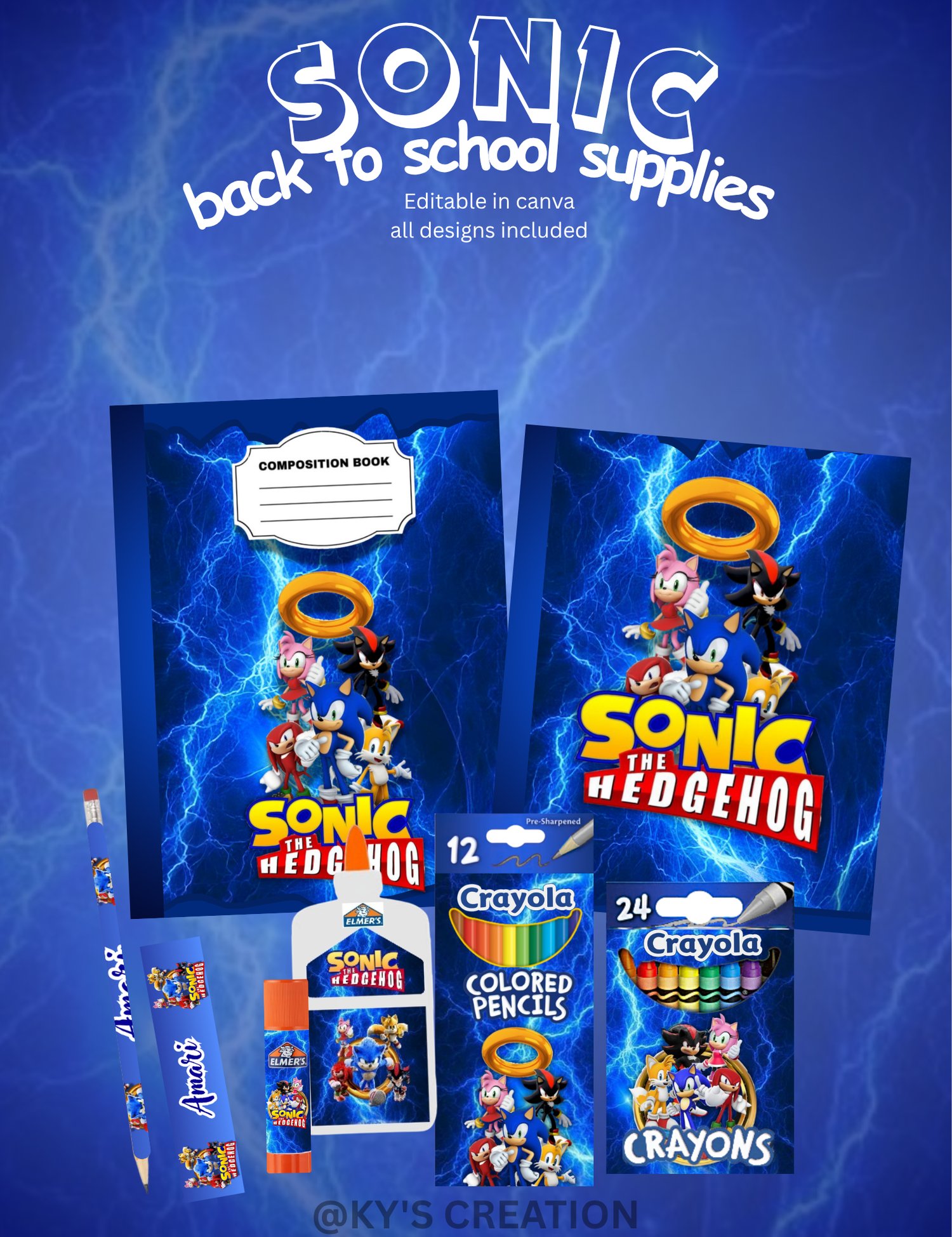 Sonic the Hedgehog Back to School Template Bundle | Digital Download | Pencil Wraps, Composition Book Cover, Glue Labels, Crayon & Color Pencil Stickers