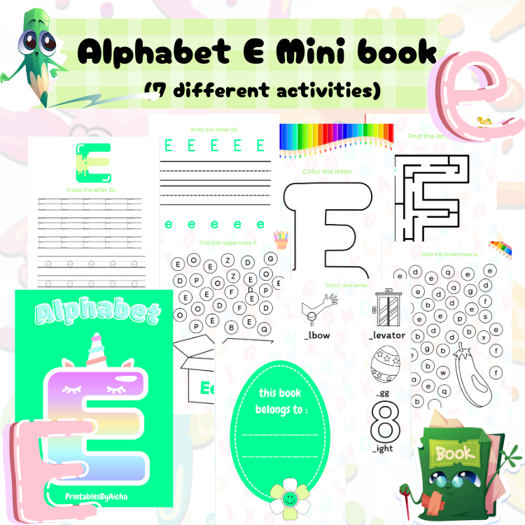 Alphabet E Mini Book – Letter E Activities for Preschool & Kindergarten (7 Printable Worksheets)