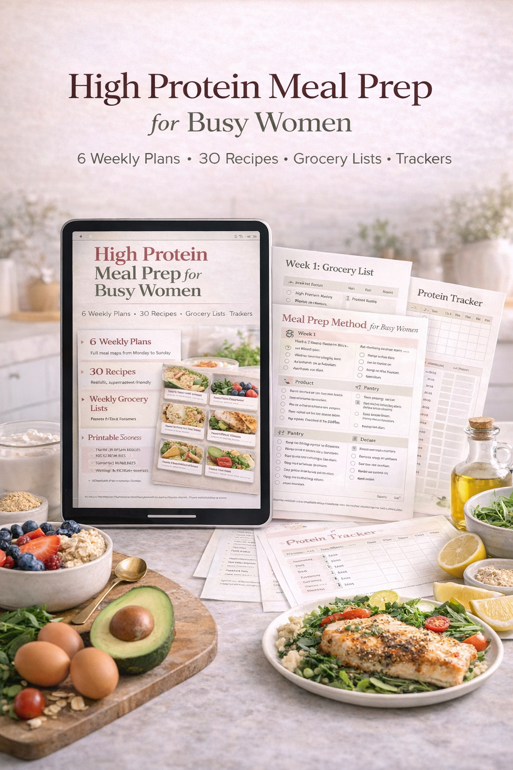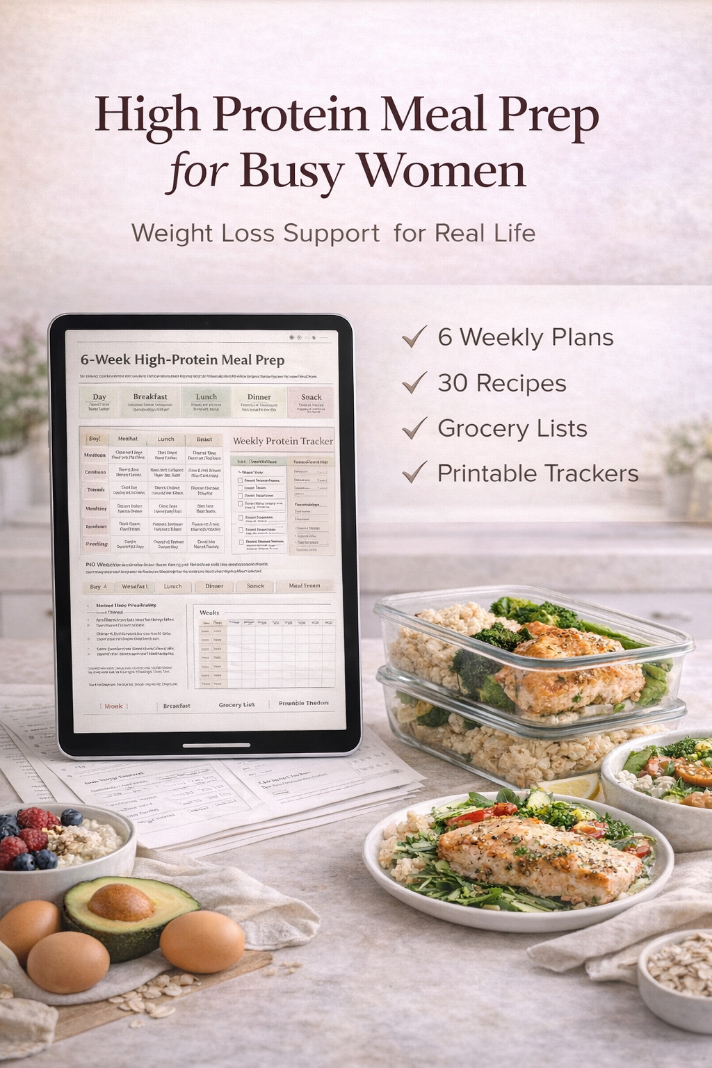 High Protein Meal Prep for Busy Women | 6-Week Weight Loss Plan, 30 Recipes, Grocery Lists & Trackers