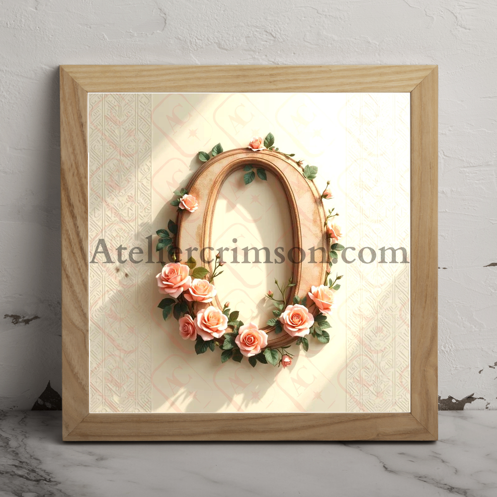 The letter O soft beige wood and flowers Download now this AI-generated image of an elegant, mid-century style character crafted from wood with a soft, neutral background with geometric pattern. Nostalgic and elegantly worn atmosphere.