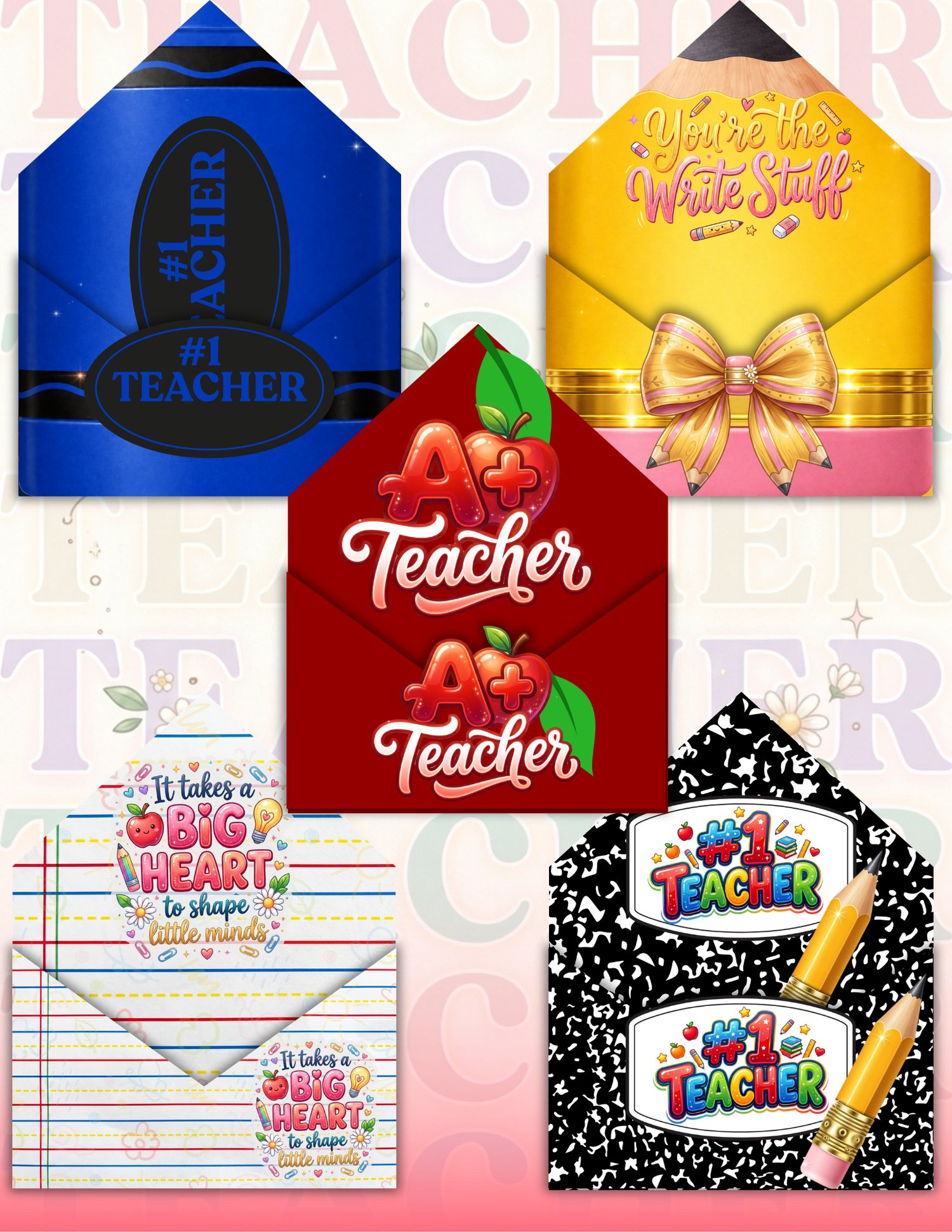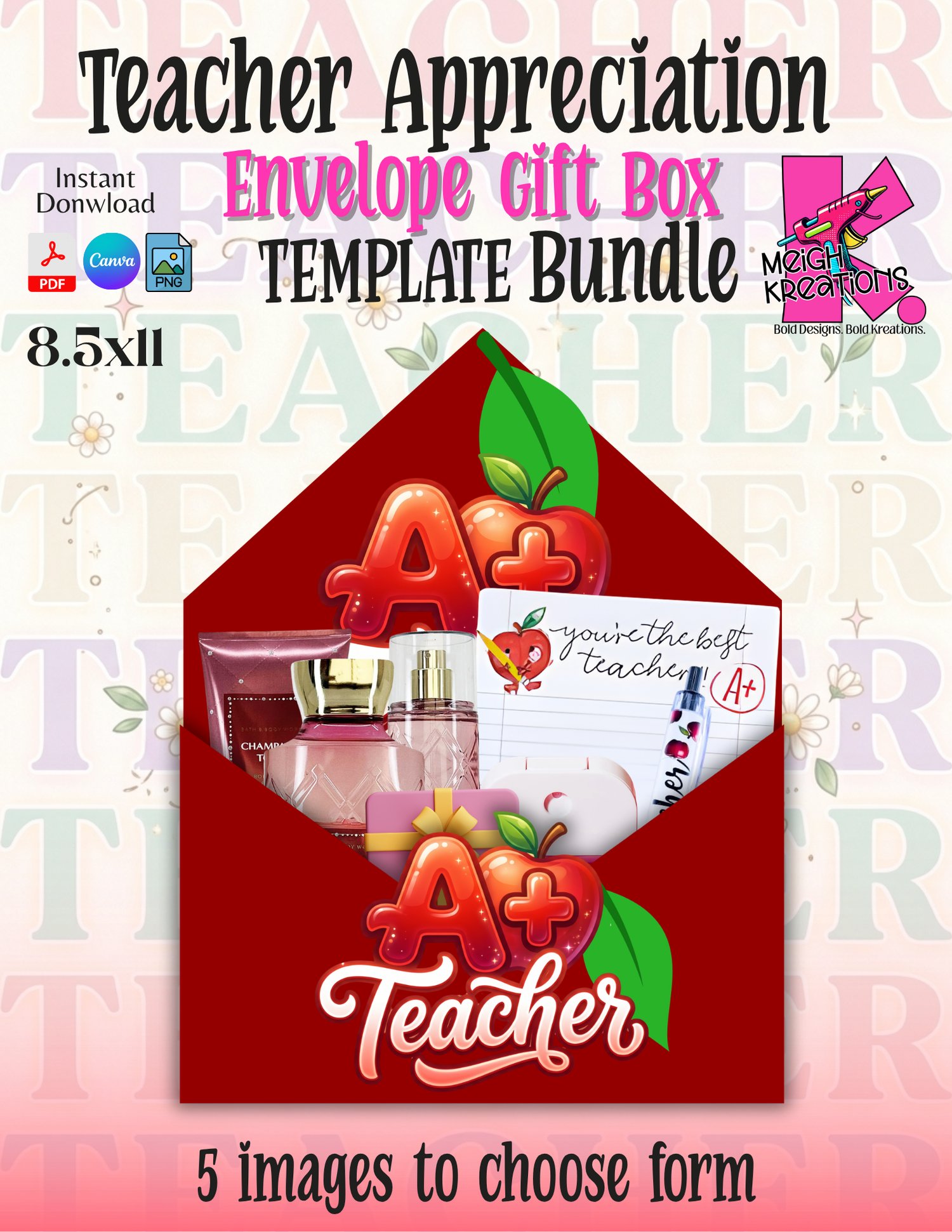 Teacher Appreciation Envelope Gift Box Template Bundle