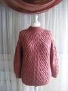 This jumper was knitted following my new invent named "Floating Cables", to replace by them the classic cables and to present the sample organization of the FC motifs. The jumper has low sleeve, is a little bit oversized and ultra light and warm, due to material used. Unisex. The pattern is symmetric - right/left sleeve is matching to the right/left side
