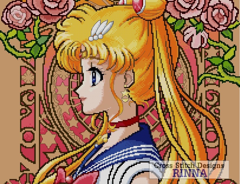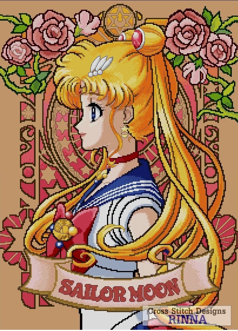Anime Design Sailor Moon Pretty ArtNouveau Style Portrait - Cross Stitch PDF Downloadable Pattern