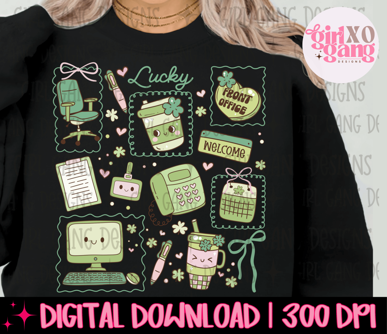 Lucky front office png, coquette frames st Patrick retro front office admin design
