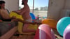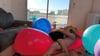 In this video we pop large balloons with our hands while riding on them.