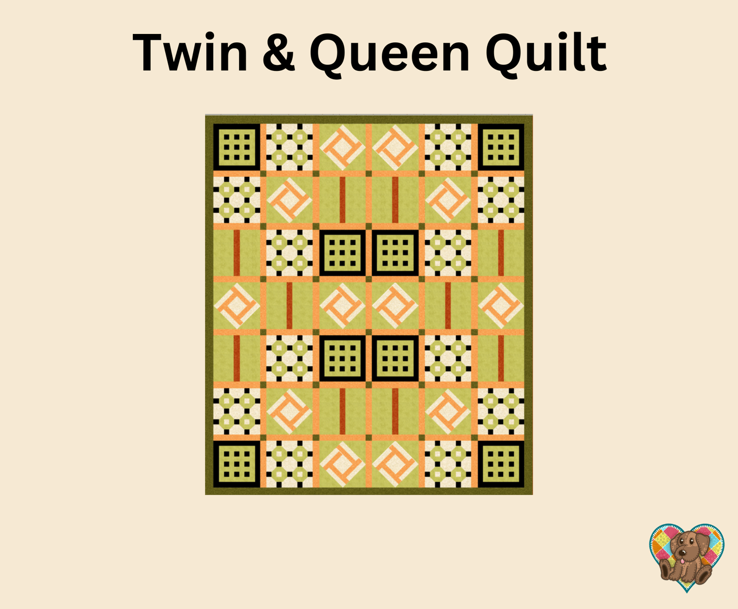 *Note: This pattern includes instructions for a baby (42.5" X 42.5"), lap (67.5" X 67.5"), twin (78" X 90.5"), queen (90" X 104.5"), and king (111" X 111") size quilt.* Blocks are traditional pieced blocks.