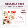 Printable Happy Birthday card featuring the Hawthorn flower, perfect for Hawthorn flower lovers or anyone born in May, as it is the birth flower of the month. This digital download birth month card is a thoughtful way to show affection to a friend or family member and makes a great last-minute gift.
