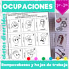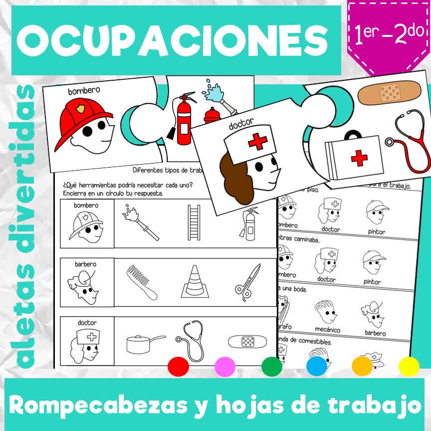 Hojas de trabajo súper lindas y llamativas para que los estudiantes identifiquen qué herramientas usa cada ocupación para realizar sus trabajos. Los estudiantes leerán diferentes escenarios y elegirán quién es el mejor para realizar el deber. Al realizar estas actividades, los estudiantes discernirán en la vida real qué ocupación realiza cada trabajo y también los harán pensar en qué rol/ocupación ocuparán en la sociedad cuando sean mayores. Incluye actividades de cortar y pegar donde los estudiantes combinarán cada profesión con sus herramientas. Puede usarse para cuadernos interactivos o como una página independiente. Los rompecabezas son increíbles para entretener mientras aprenden y recuerdan las herramientas necesarias para hacer el trabajo. Práctica de escritura incluida.