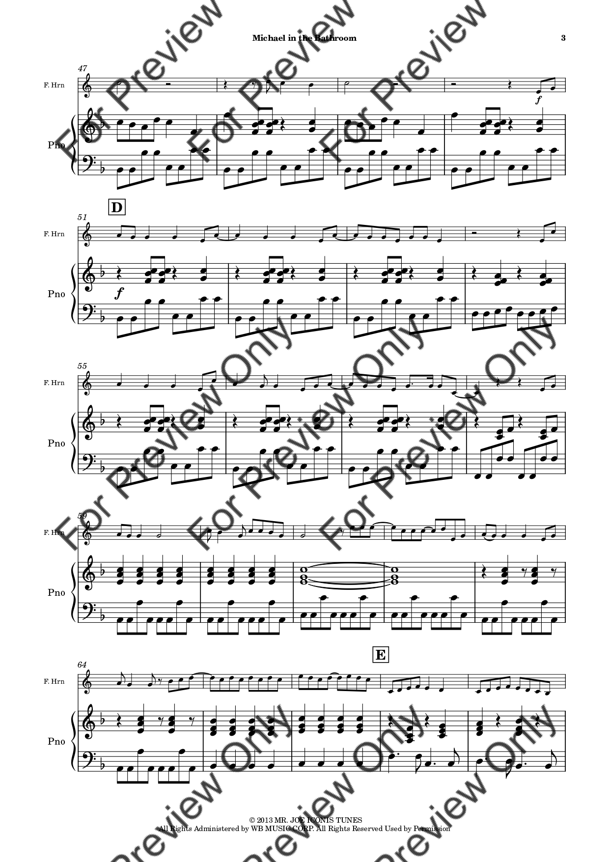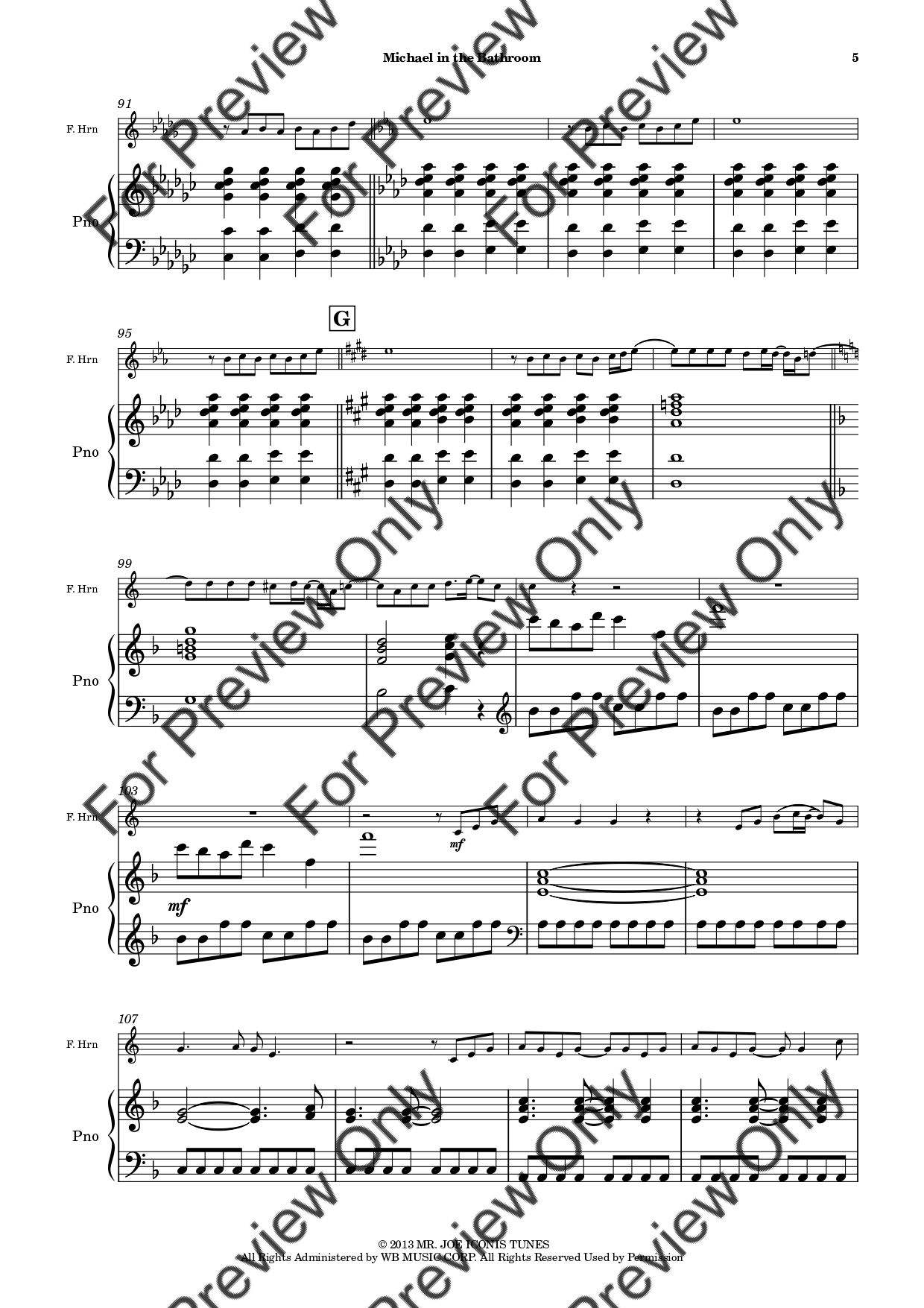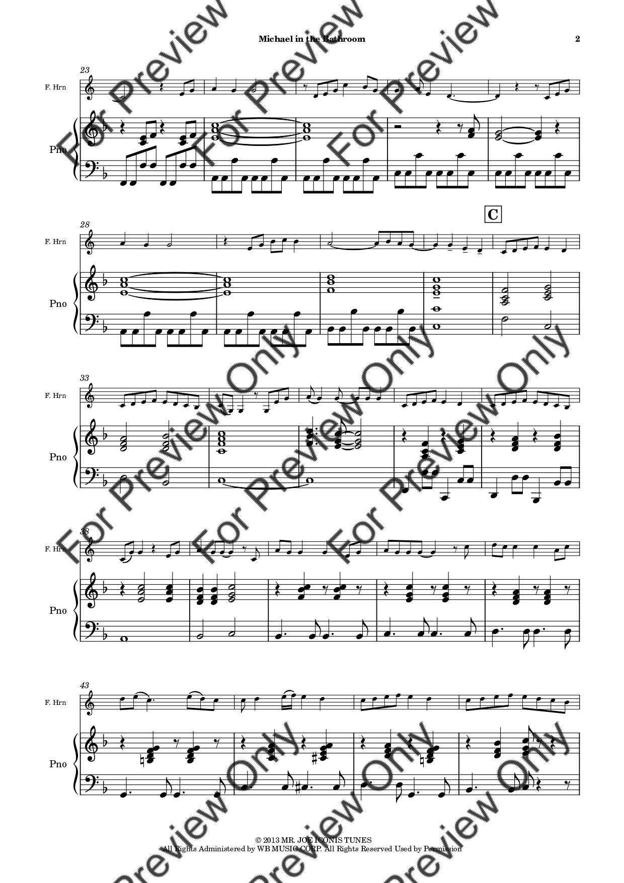 Michael In The Bathroom from Be More Chill by Joe Iconis. Arrangement for French Horn and Piano. With Full Score and Individual Parts. Have fun!