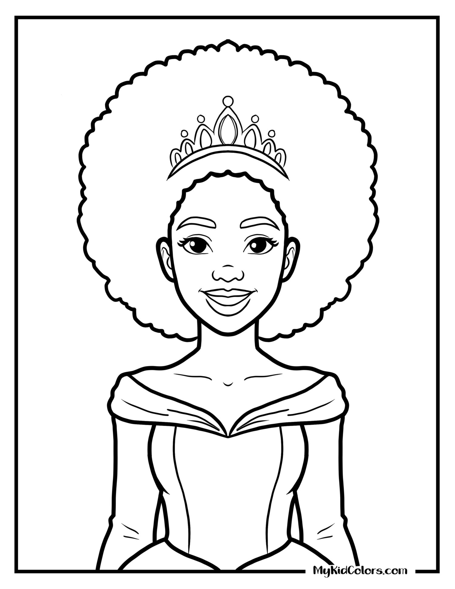 Free Human-Drawn Inclusive Black Princess Coloring Pages