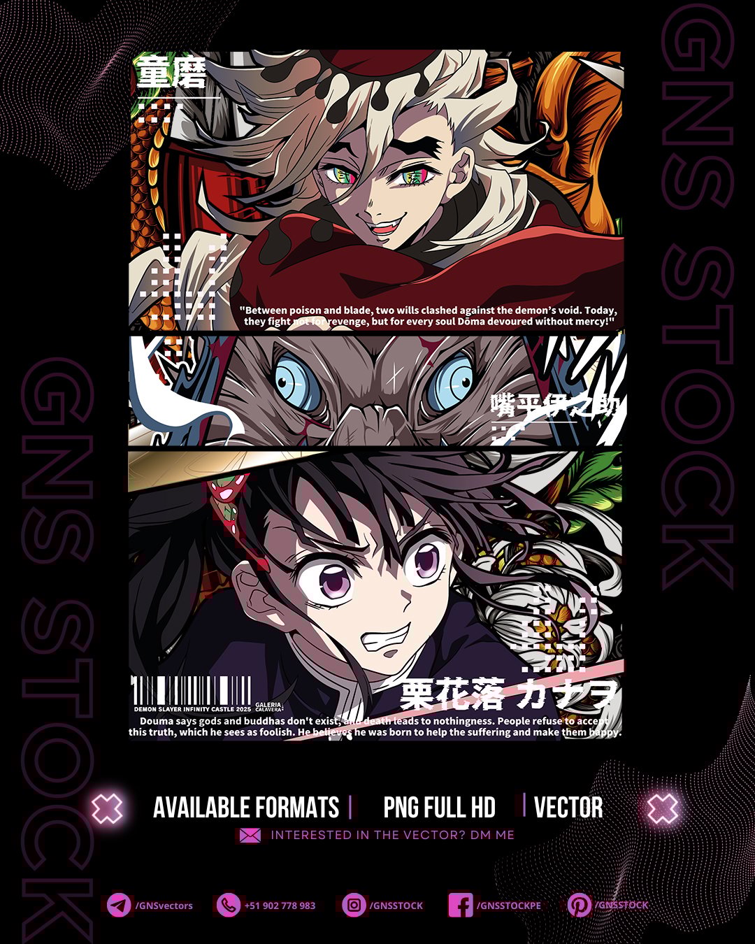 Anime Vector – Inosuke, Kanao & Doma | Demon Slayer | Design for DTF, Sublimation, T-Shirts | Files: CDR, PDF, PNG, SVG