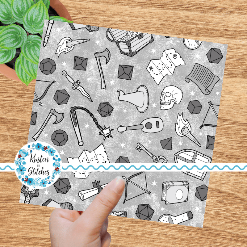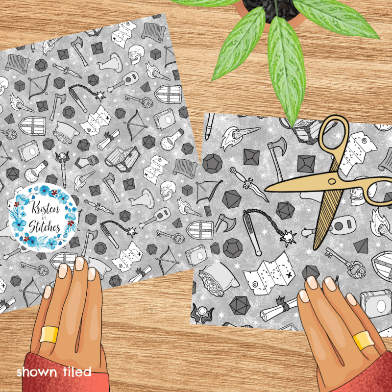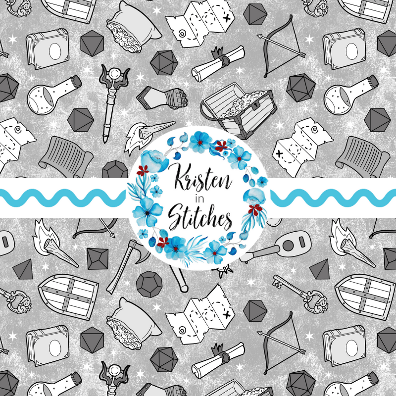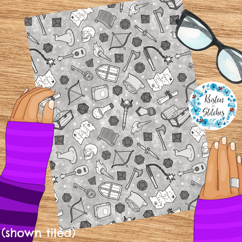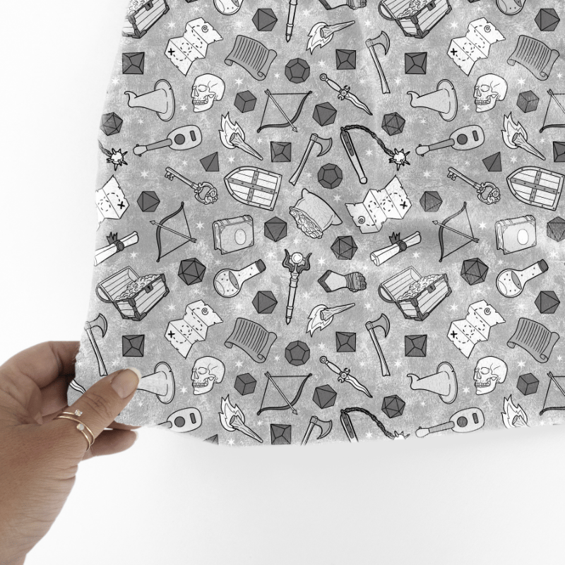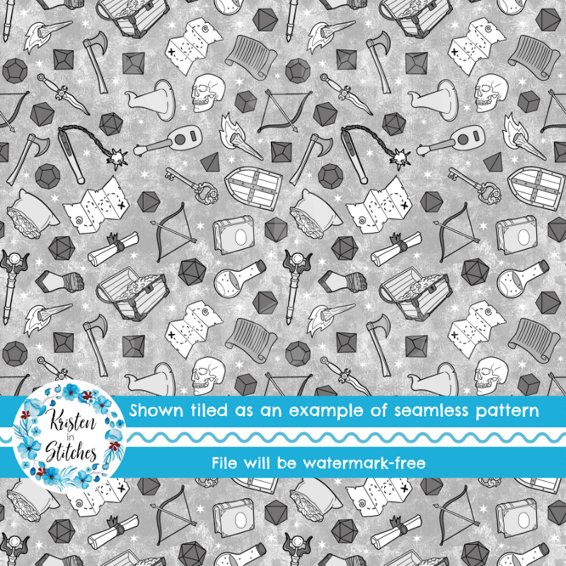 Fantasy Games Seamless Pattern, RPG DND Adventure, Polyhedral Dice, Grey