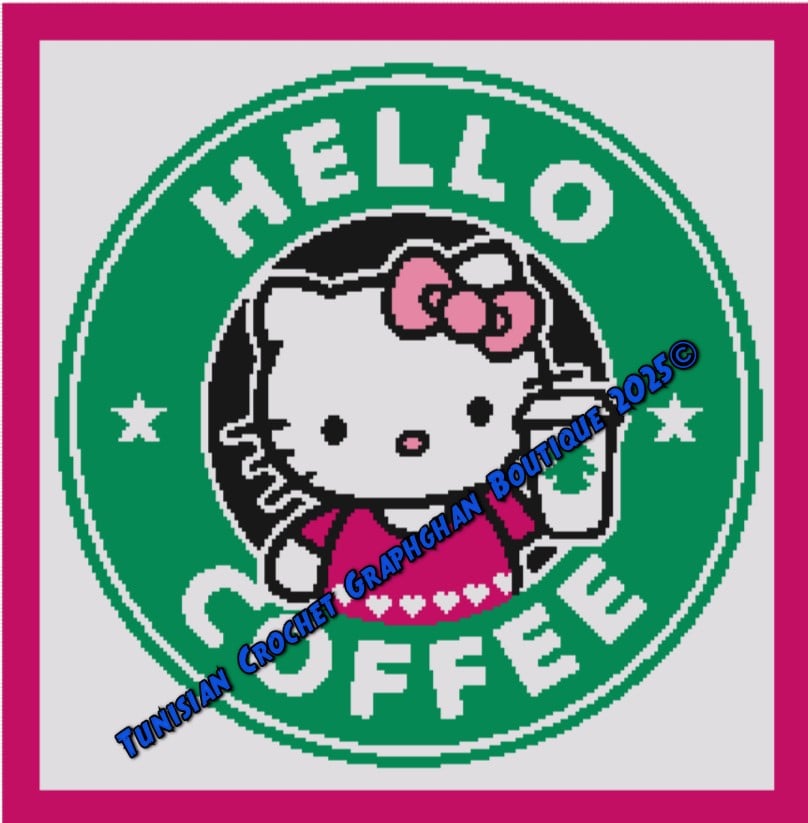 Hello Kitty Coffee Throw Tunisian Crochet Pattern