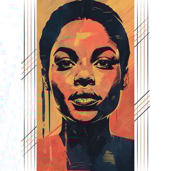 Bring power and elegance to your space with this 30x40 inch high-resolution wall print. "Strength in Silence" captures the striking gaze of a Papua New Guinean woman in bold silkscreen style—blending modern illustration with traditional strength. With deep shades of gold, navy, and coral, this artwork radiates cultural pride, resilience, and timeless beauty.