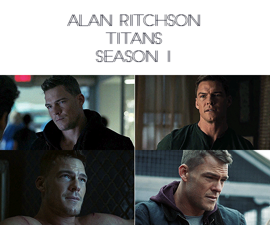In this here gif pack you’ll find 213 gifs of Alan in 'Titans', season 1. All these gifs were made by me, so please don’t claim as your own. Do NOT put into other gif hunts. If credit is given, you may use/edit them as sidebars, crackships, etc, just please ( @ ) me in your creations!