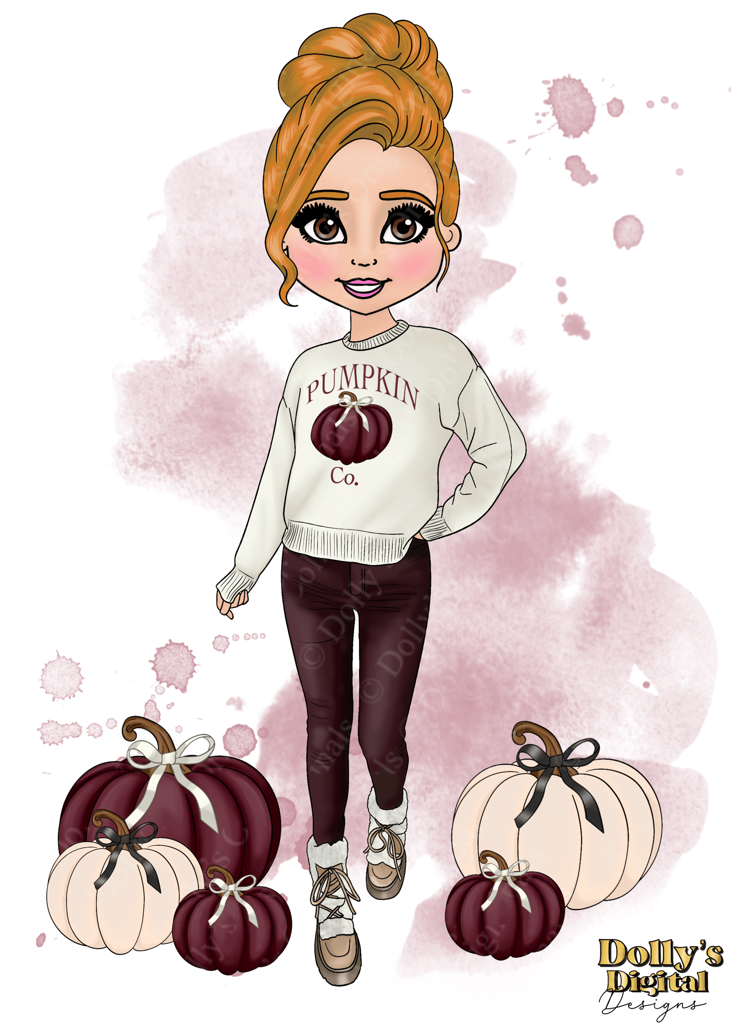 Instant digital download of our Burgundy Pumpkin Co Jumper Dolly Character Bundle PNG (30 PNG’s)