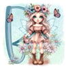 Flower fairy alphabet. 9 separate fairies; blonde, brunette and red haired fairies, with brown, green and blue eyes, with A-Z alphabets backgrounds.