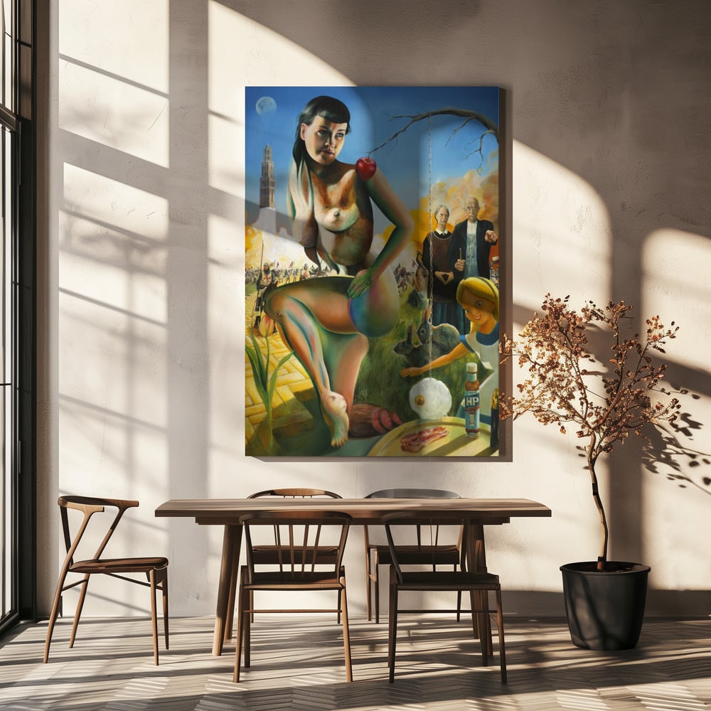 Oil painting on wood panel (85 x 120 x 0.9 cm)