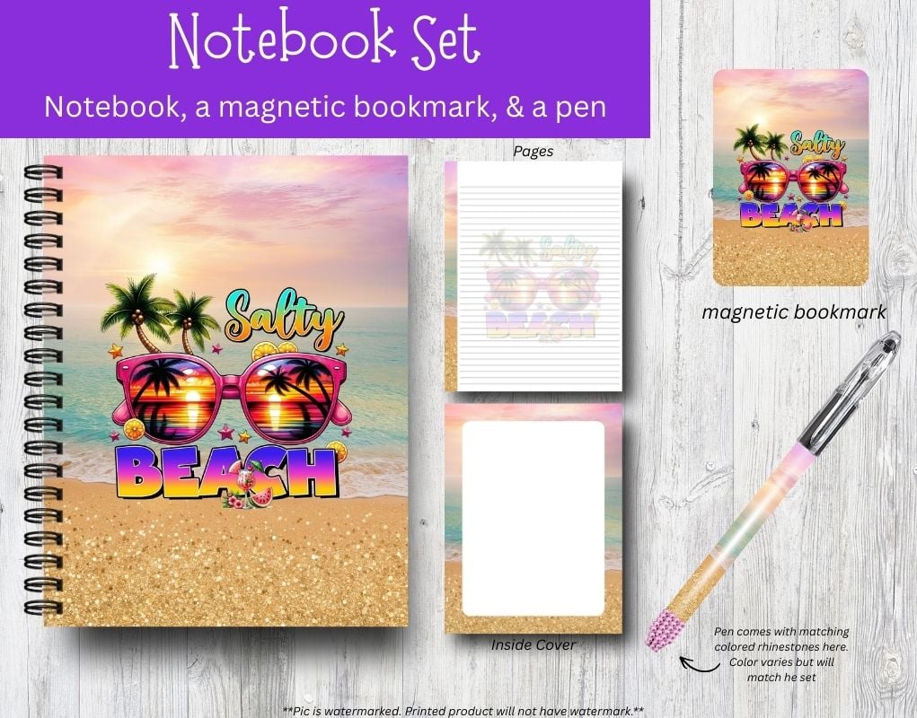 Choose the notebook alone for a simple daily essential or upgrade to the deluxe set for a coordinated look with a matching pen and magnetic bookmark.