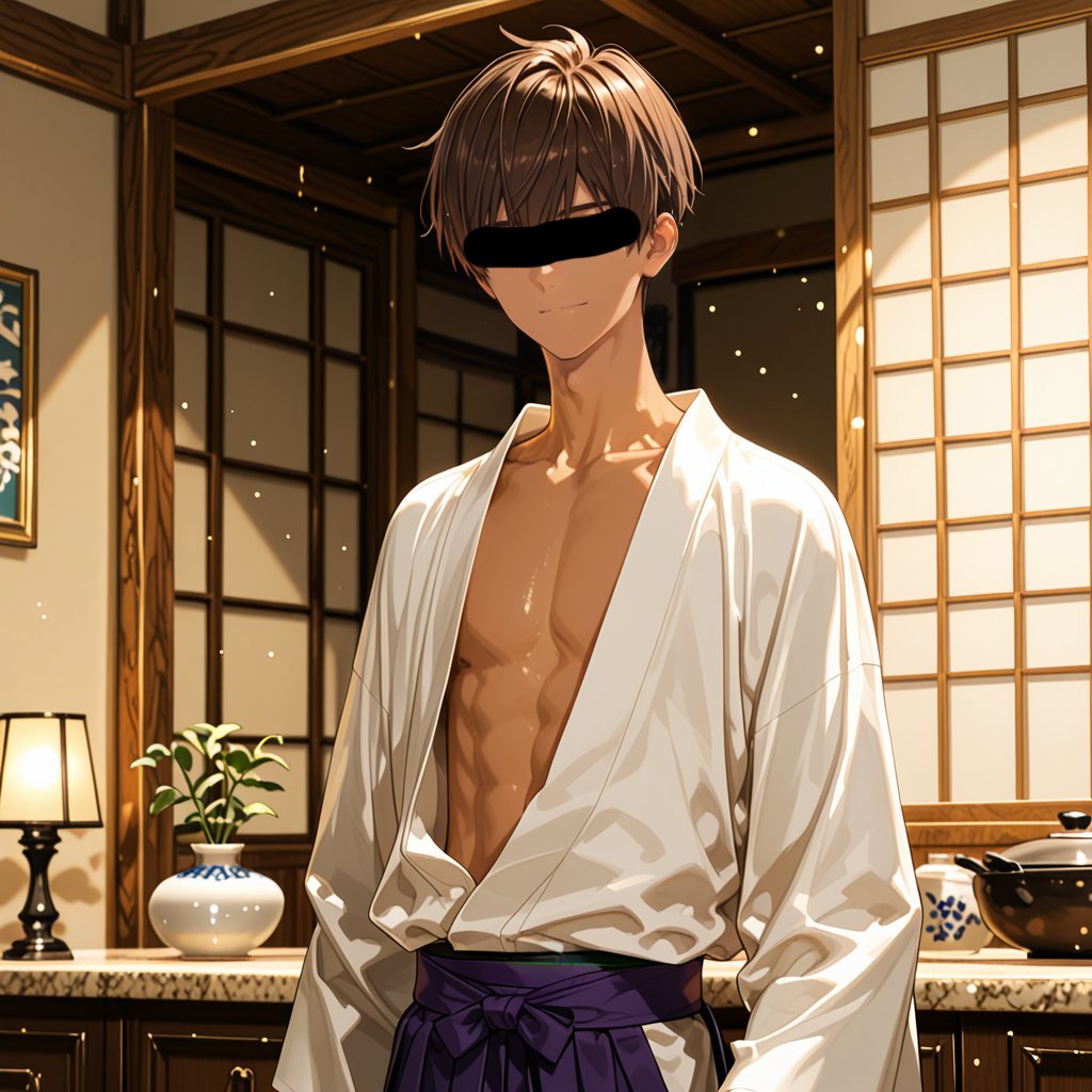 日本の正月をテーマに、着物を着用している男性を、キャラクターごとにお任せ作成しました。男らしいキャラクターの魅力を思い切って表現しました。