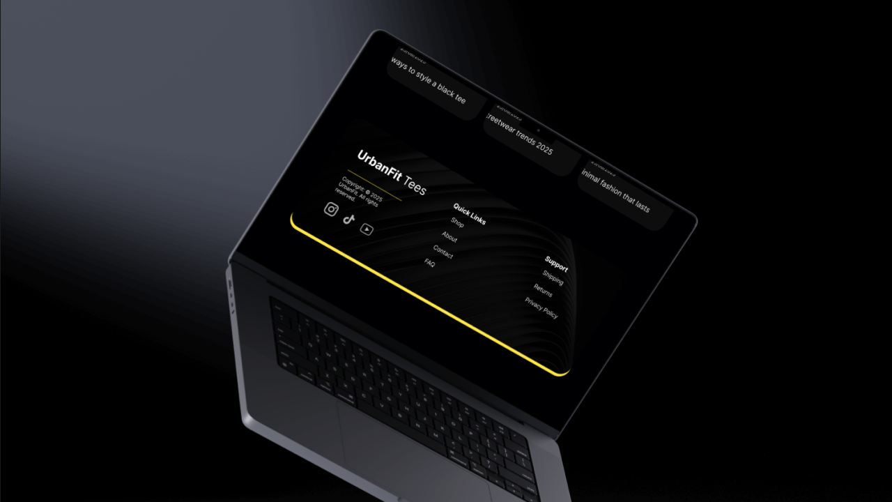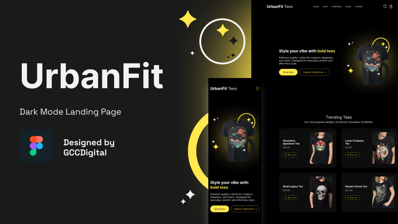 UrbanFit is a dark mode landing page concept created for a modern e-commerce clothing store. The design focuses on bold typography, strong visual contrast, and a minimal UI layout that makes products stand out.