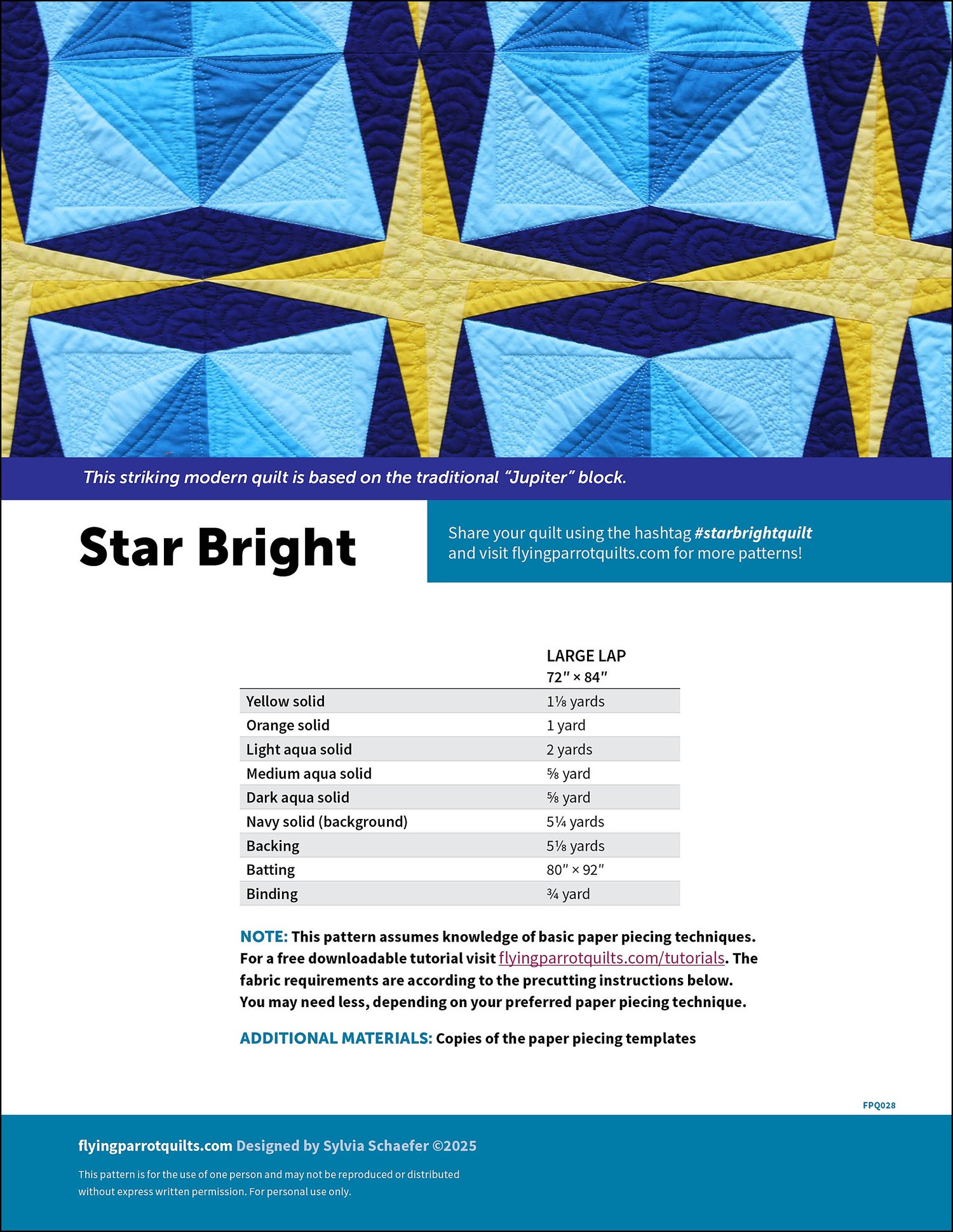 This modern quilt uses rows of star blocks on expansive negative space to make a big impact. Includes instructions for facing your quilt to create a borderless finish. This design example was shown in The Quilter's Negative Space Handbook; now you can get the pattern!