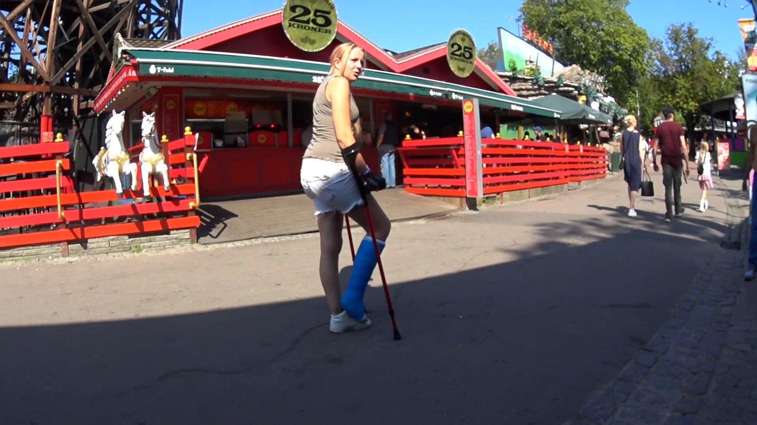 An entire day at an amusement park is probably no one to refuse even if you have crutches and cast.