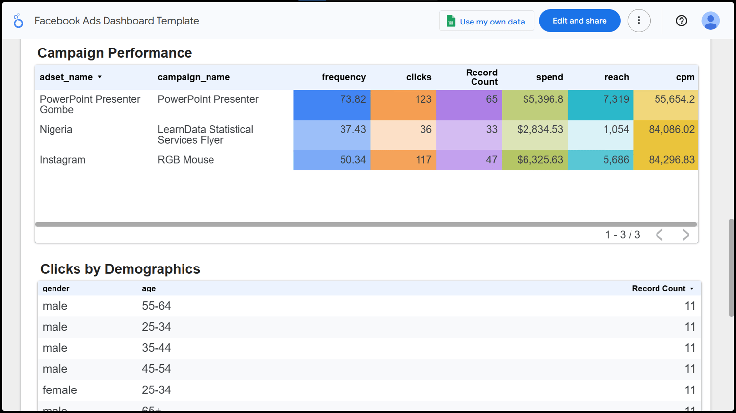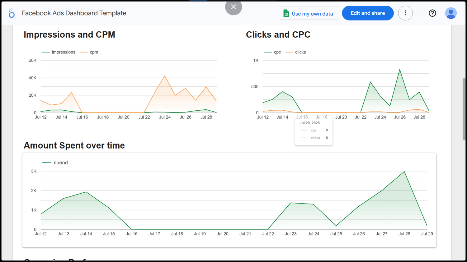 Our Facebook Ads Looker Studio Dashboard is designed to eliminate the complexity of manual reporting, providing marketers with a professional, high-level overview of their campaign performance in one centralized location. By acting as a visual command center, this template transforms raw, overwhelming data into clear metrics, such as CPM, CPC, and conversion trends, allowing you to identify winning strategies at a glance. Users need this tool to save hours of tedious data entry every week and to replace static spreadsheets with a dynamic, interactive experience that makes it easy to communicate ROI to clients or stakeholders. Whether you choose the manual path or the automated sync, this dashboard ensures you spend less time building reports and more time optimizing your ads for growth.