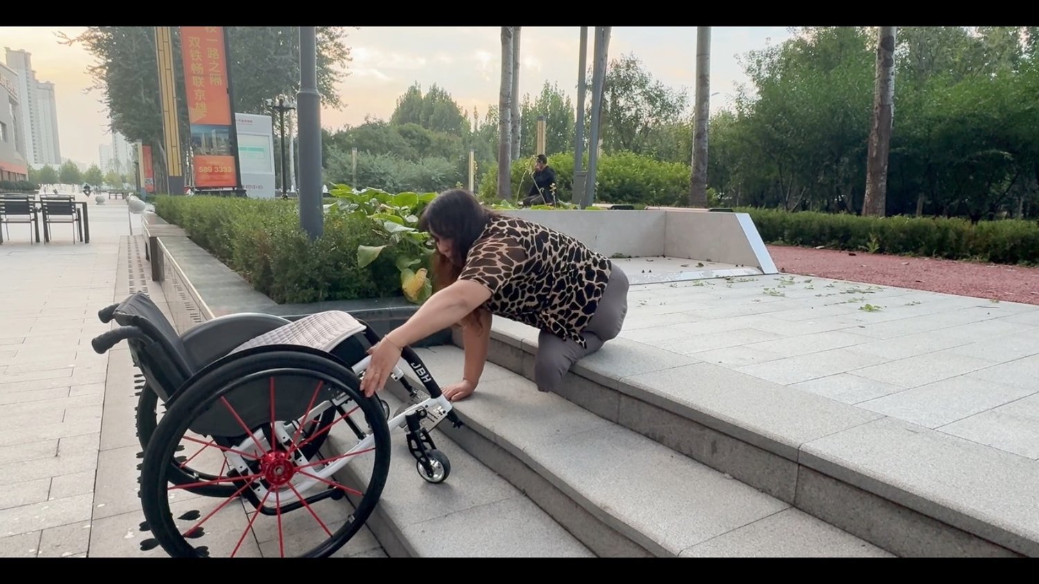 Barbie went shopping today in her wheelchair, and encountered many difficulties along the way. She came across stairs, and since no one offered to help her, she had to get out of her wheelchair, climb the stairs, and then drag the wheelchair up with her hands. Such incidents left her exhausted, and she vowed never to go to those places again.