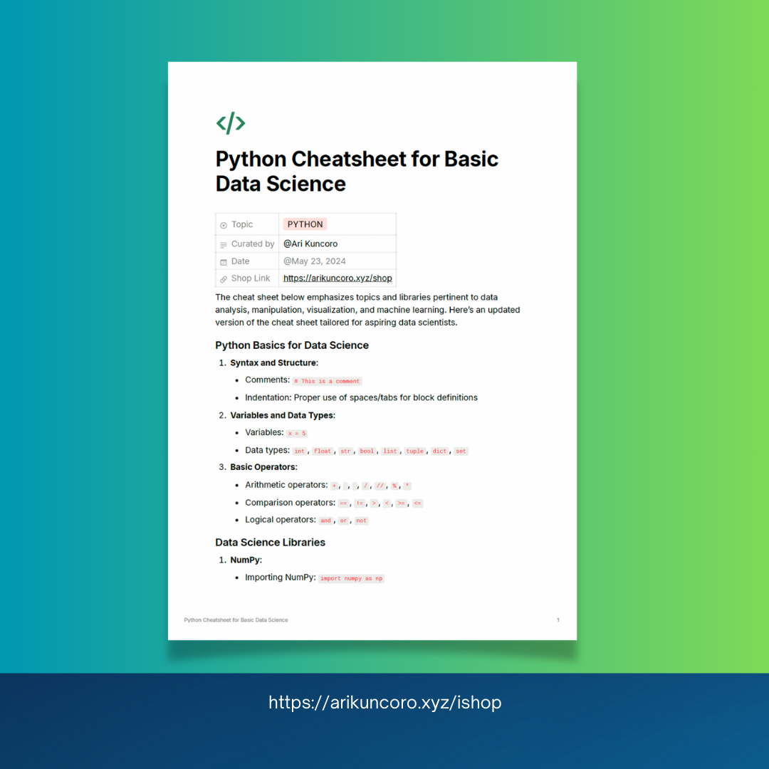 Unlock data mastery with our ultimate cheatsheets for Python. Perfect for all skill levels, this guide offers concise, practical tips to streamline your workflow and boost productivity. Transform your data science skills with easy-to-follow cheatsheets, putting essential information right at your fingertips.