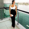 Slim Fit Sheath Dress with Halter Neck Ruffle Commuting Women's Dress