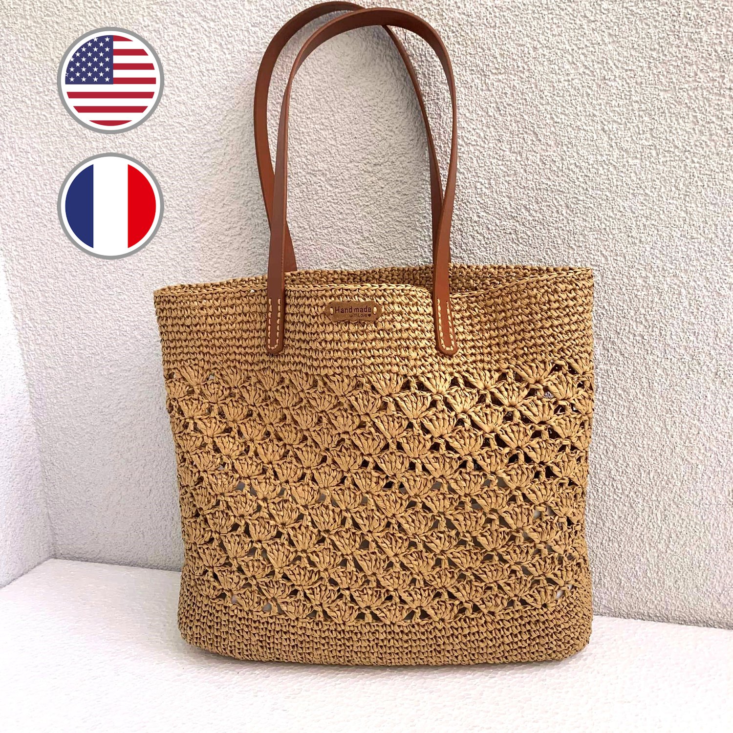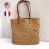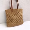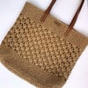 Crochet tote bag pattern made with raffia yarn.