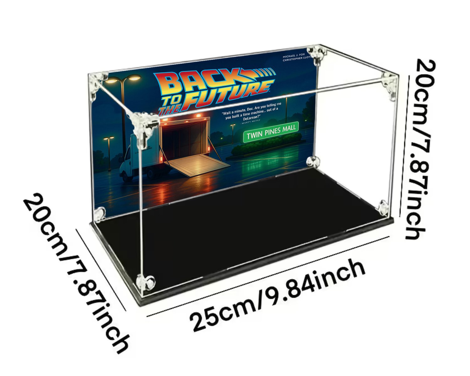 Enhance your collectible with a high-resolution 25 cm (width) x 20 cm (height) display poster, specially designed for the Funko Pop® Movie Moment #1846 – Doc & Marty (Twin Pines Mall scene).