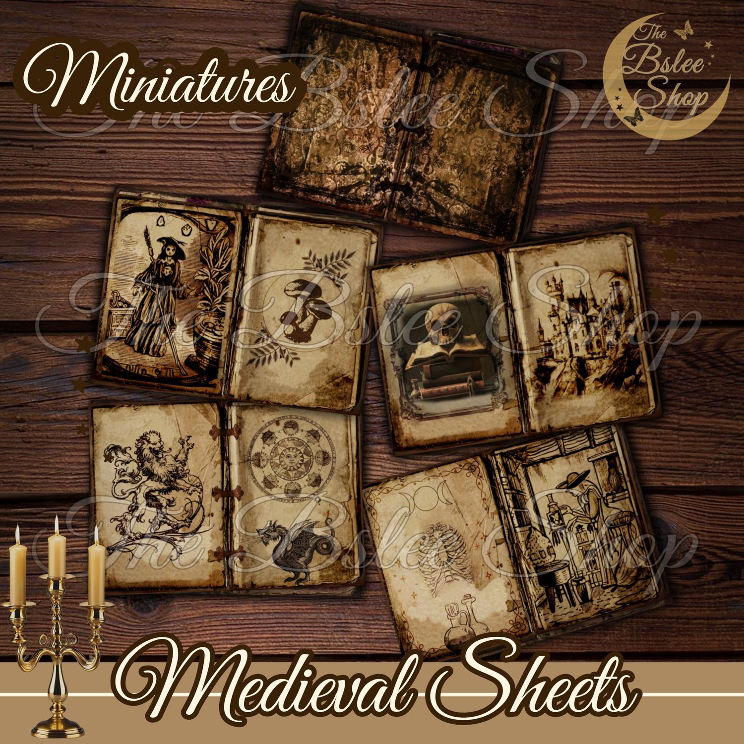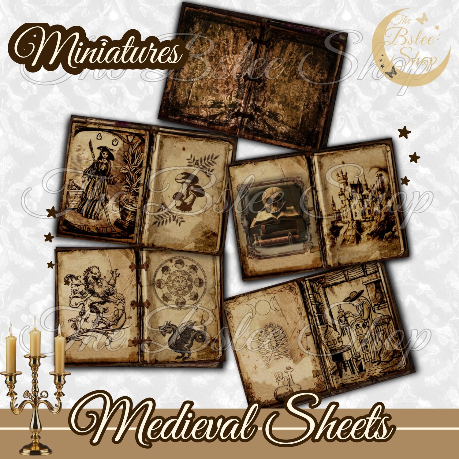 This is a medieval style set of miniature double sheets in whimsical witchy brown tones, for your Dollhouse, Diorama and other crafts! You will get 2 sizes. A PNG File will be available for download after the purchase.
