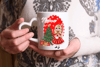 Beautiful personalised Christmas mug and matching coaster featuring our red Christmas Abigail doll
