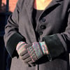 Can you imagine a wind so hot and dry that it is called poison? In this glove design, I have played with “poisonously” bright variegated yarn contrasted with a solid. Offset cables mimic sand moved by the wind. The cuff has Arabic lettering for the word Samoom stranded as a Middle Eastern flavored variation on Fair Isle. This is a perfect design to use that bright skein of hand dyed yarn that is a bit too much knit by itself. The contrast color can easily be used for all three sizes, to make a matching or coordinating set for the whole family.