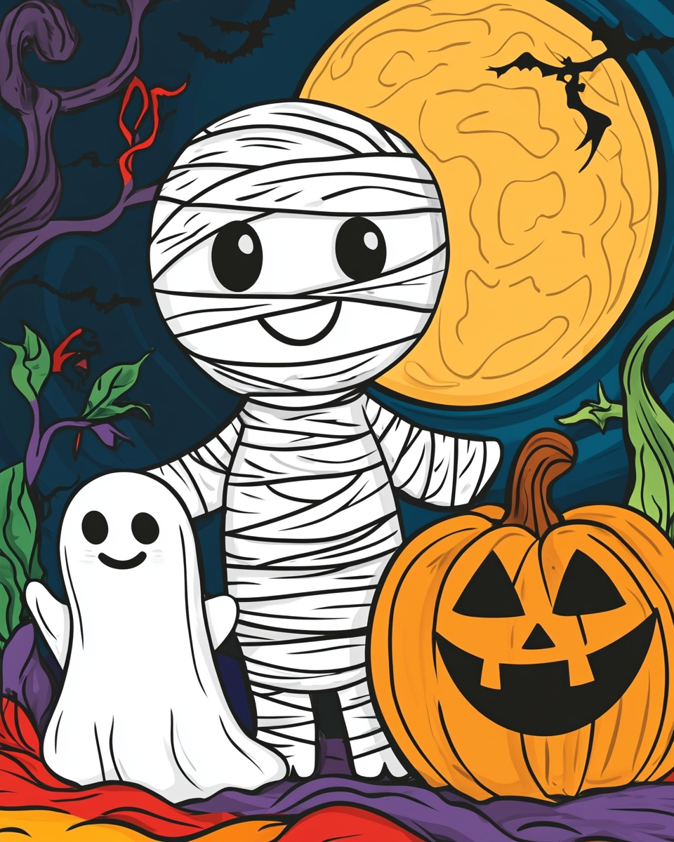 Enjoy the Halloween spirit while coloring witches, pumpkins, ghosts, and more!