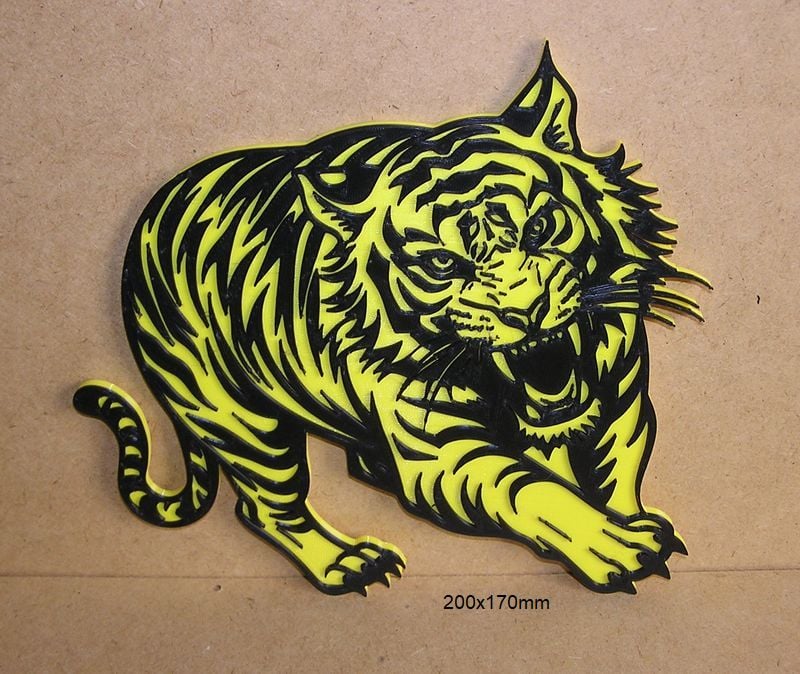 Tiger Poster, Sign, Logo of the furious annimals, these STL and Gcode files have been created to be printed in various colors with any FDM type printer. The color changes have been made with the Elegoo Neptune 3 Pro printer, but they can be printed on any printer.