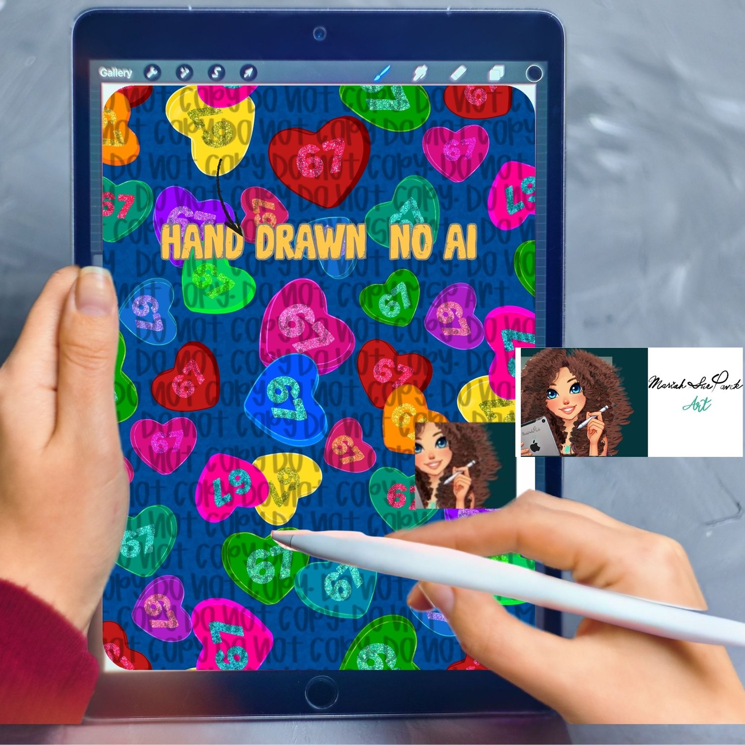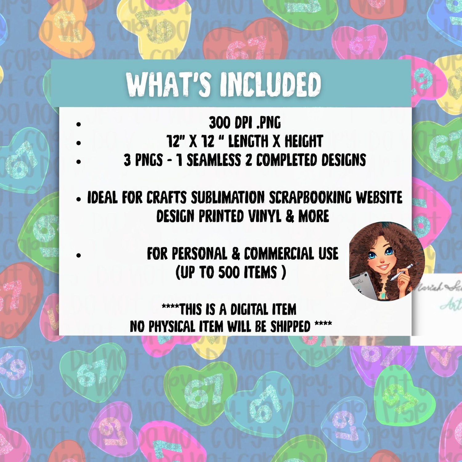 Sweeten your shop with this adorable Candy Hearts Valentine Mini Bundle! With 67 pastel heart graphics, a seamless background, and a bonus “Happy Valentines” PNG, this pack is perfect for planners, printables, tumblers, and more.