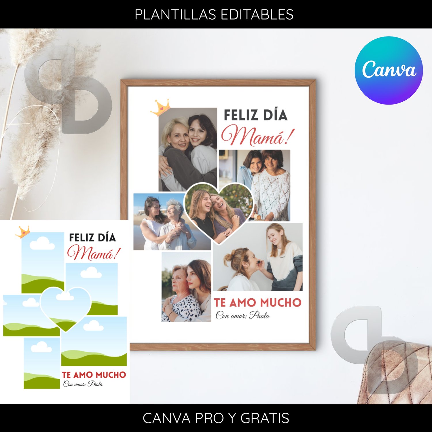 Plantilla día de la madre2 - Plantilla editable para Canva Gratis o Pro