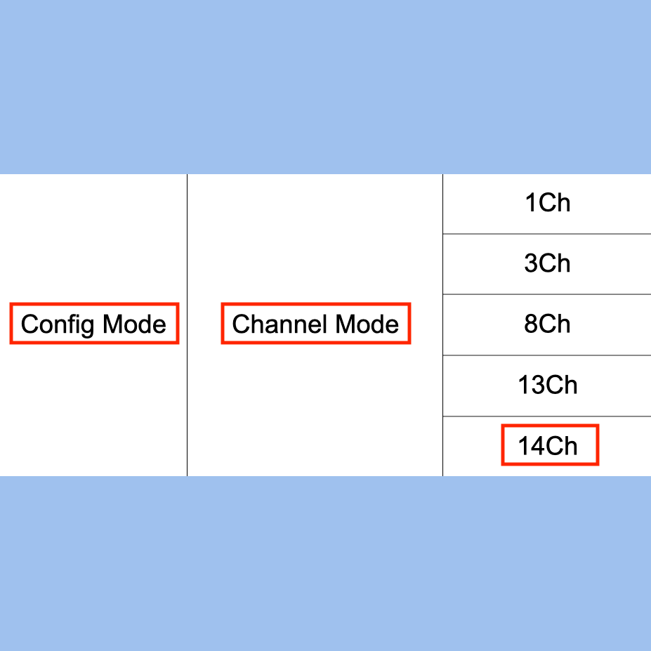* Verifique, desde el display del equipo, que el menú "Config Mode / Channel Mode" muestre los modos: 1CH, 3CH, 8CH, 13CH y 14CH.